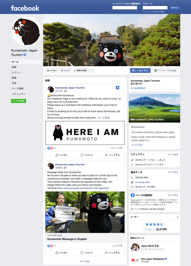 英語版: facebook.com/Kumamoto-Japan-Tourism-221432125399019/